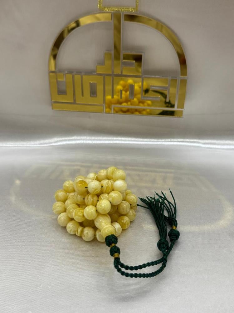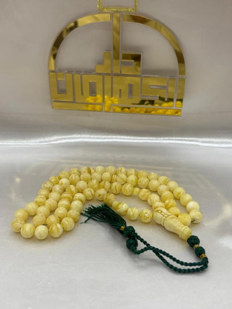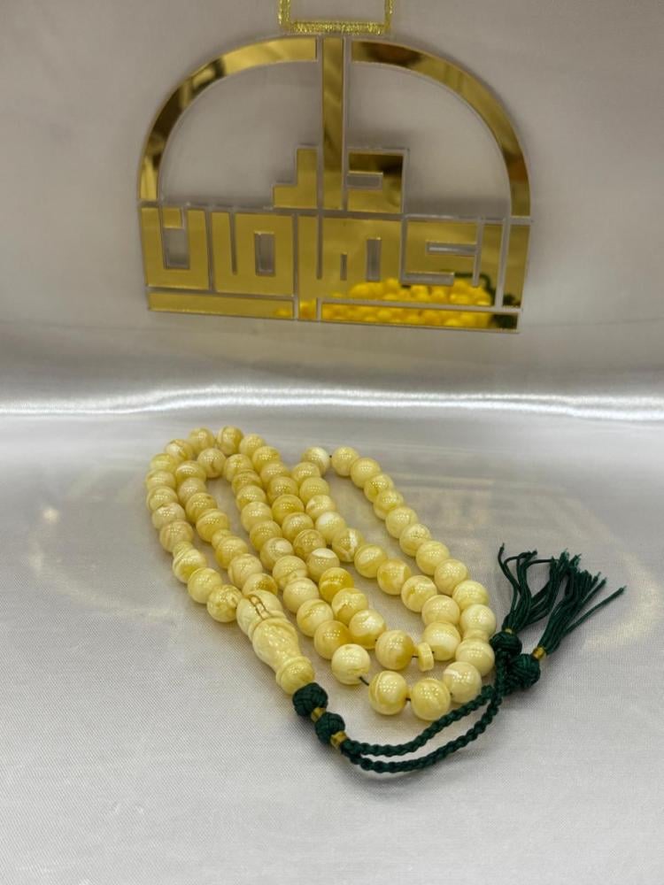 - كيف يمكنني التأكد من جودة المسباح عند الاستلام؟ يمكنك ملاحظة الملمس الناعم، ووزنه الثقيل المتناسق في اليد، بالإضافة إلى تدقيق النظر في التشخيطات الدقيقة التي تغطي الخرز. الكهرمان الطبيعي الأصلي يتميز بدفء ملمسه وتغير درجات ألوانه تحت الإضاءة المختلفة.
